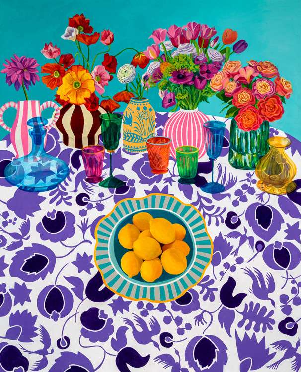 Table Tango- 32 x 44"- Acrylic on canvas over cradled board- 2025