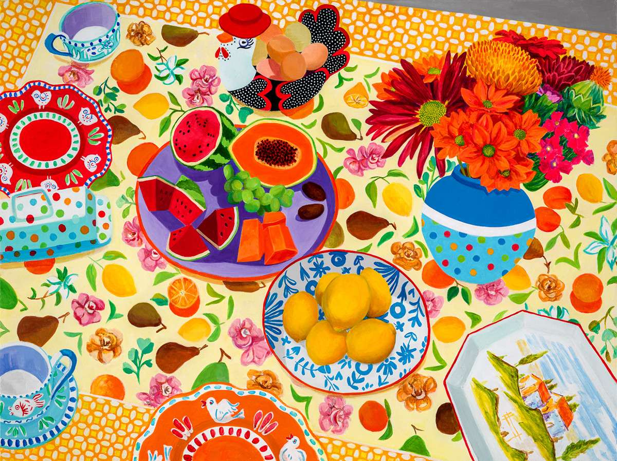 Tutti Frutti- 30x 40"- Acrylic on canvas over cradled board- 2025
